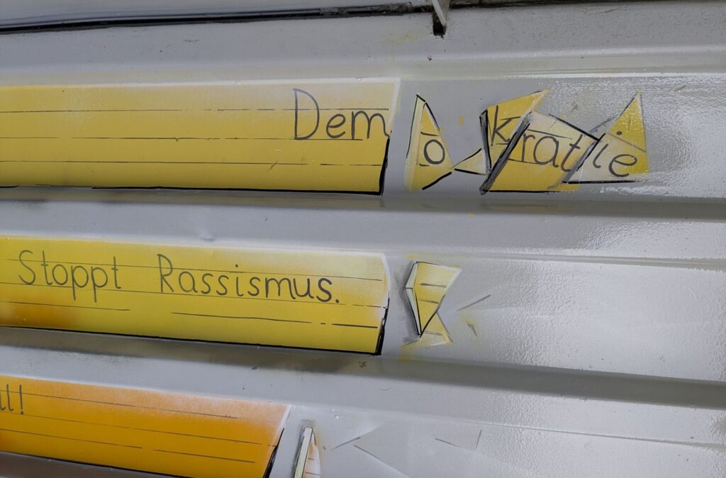 „Bausteine der Demokratie“ ermöglicht Kindern, Demokratie durch aktives Mitgestalten ihres Schulumfelds unmittelbar zu erleben. An der Geisbergschule Linsengericht gestalten Schüler:innen gemeinsam eine Bushaltestelle sowie einen Freundschafts- und Spielbereich und erfahren dabei echte Mitbestimmung. Durch künstlerische Prozesse lernen sie, Verantwortung zu übernehmen, Kompromisse zu finden und ihre eigenen Ideen wirksam einzubringen. So stärkt das Projekt demokratische Selbstwirksamkeit und legt eine wichtige Grundlage für gesellschaftliche Teilhabe.